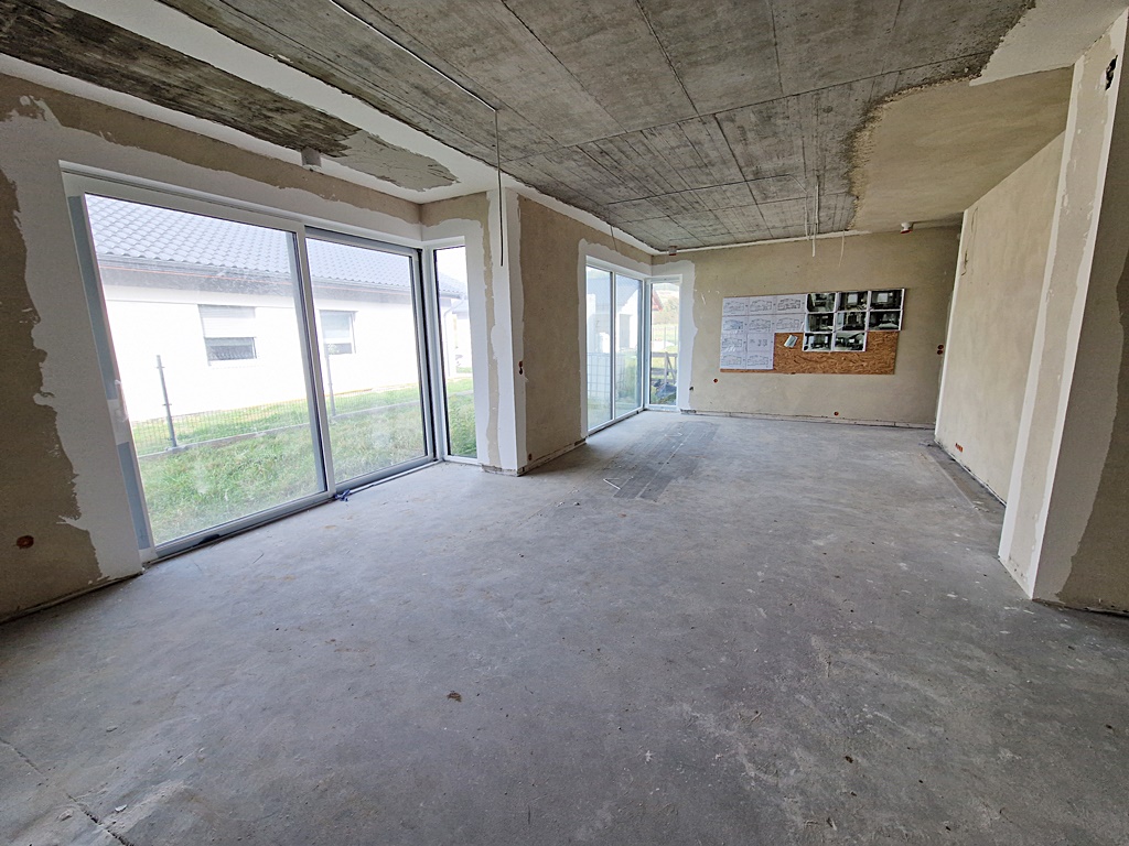 Nieruchomość w stanie surowym zamkniętym: tynki oraz wylewki, dom nie posiada pieca.