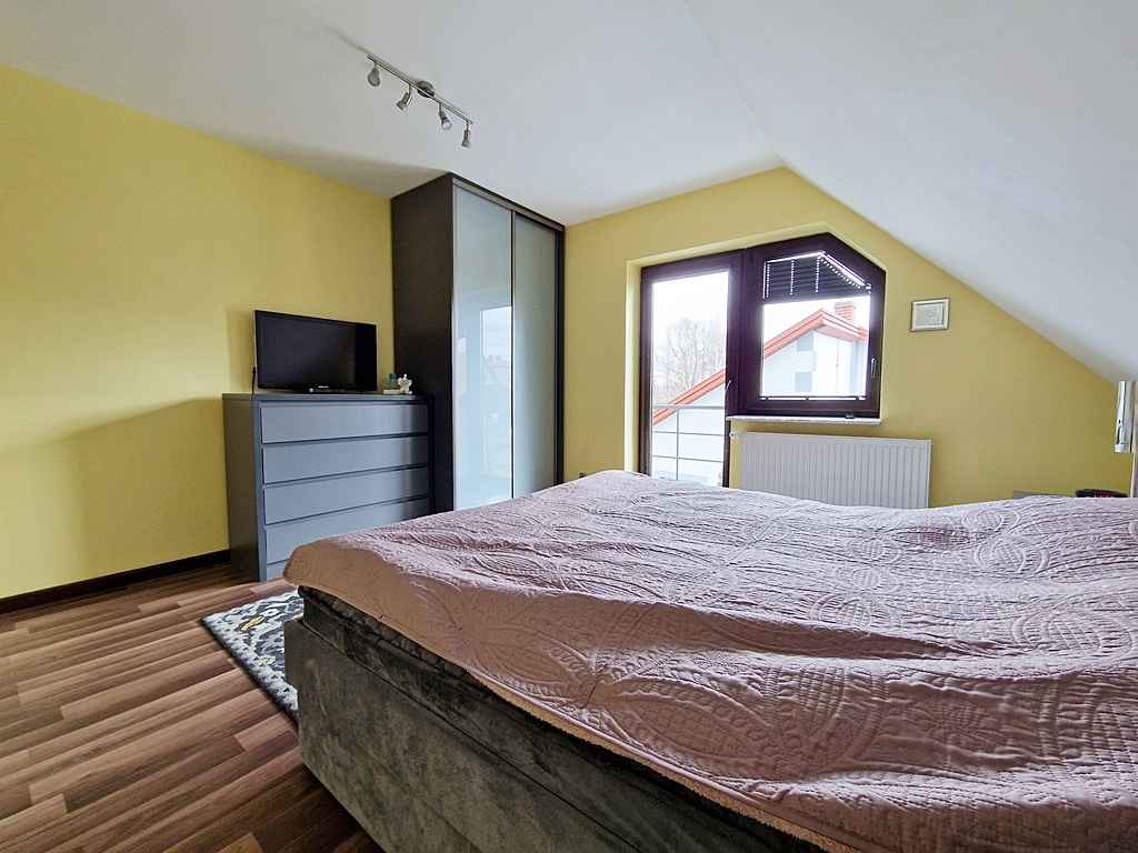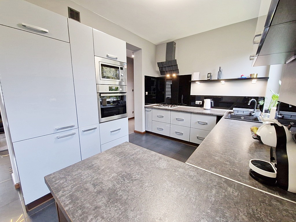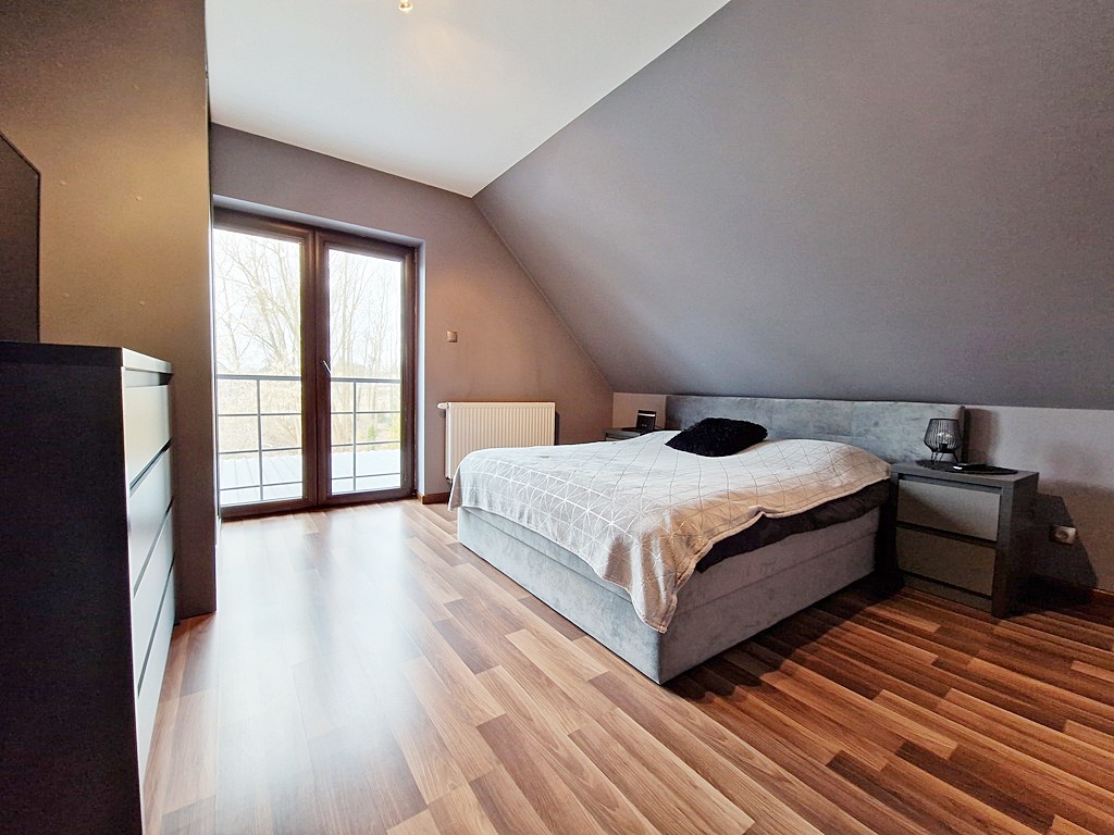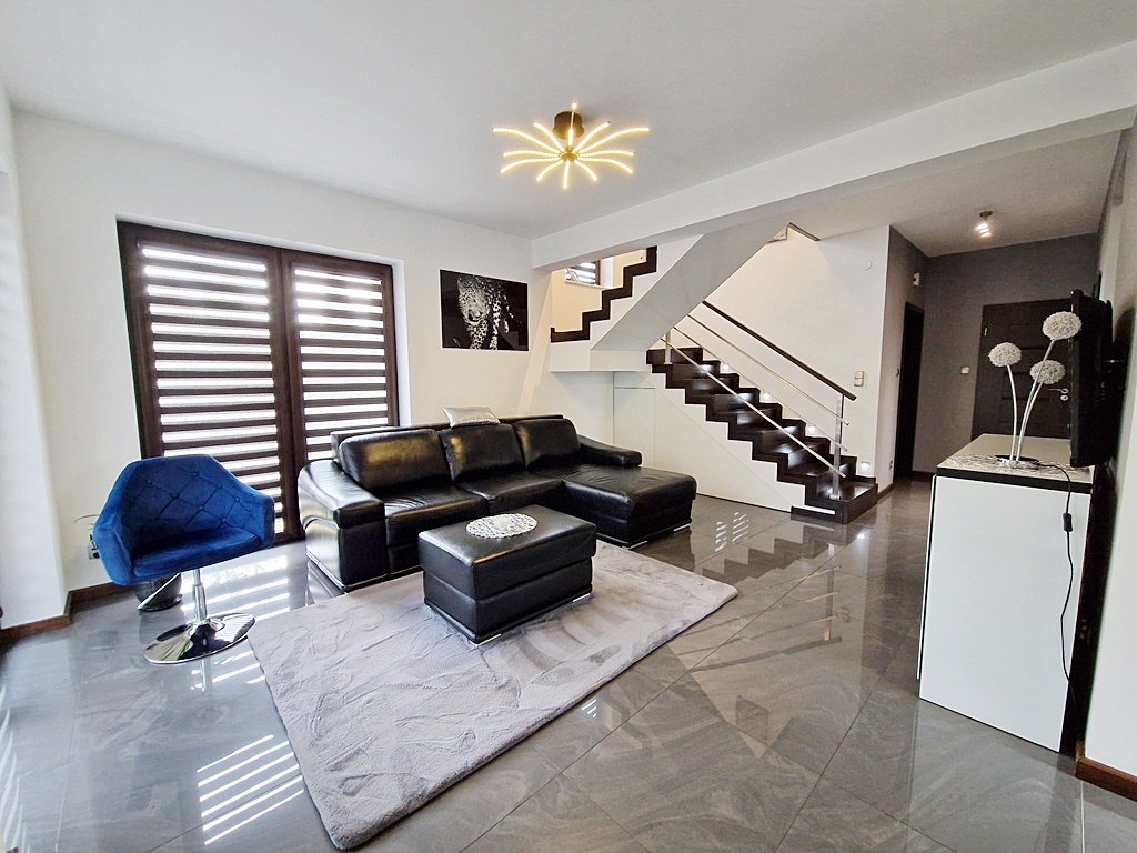 Dom jednorodzinny o funkcjonalnym układzie wewnętrznym, wybudowany w stylu klasycznym, doskonale łączy komfort z nowoczesnymi rozwiązaniami. Parter budynku prawie w całości został przeznaczony na komfortową strefę dzienną i zarazem relaksacyjną. Kuchnia w zabudowie pod wymiar z optymalną ilością blatów roboczych, wyposażona została w sprzęt AGD: lodówkę, piekarnik, mikrofalę, płytę grzewczą, okap i zmywarkę. Dębowe schody prowadzą na piętro domu. Umeblowanie oraz wyposażenie w cenie prezentowanej nieruchomości.