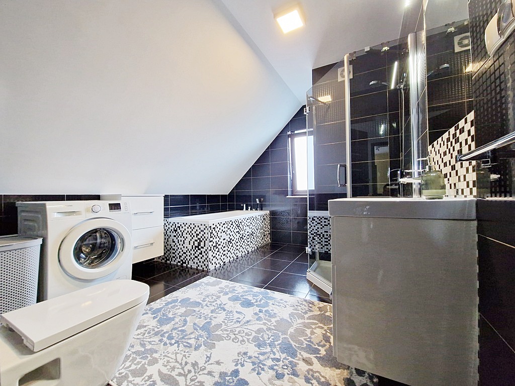 | Wyposażenie łazienki | natrysk, pralka, umywalka, wanna, wc |