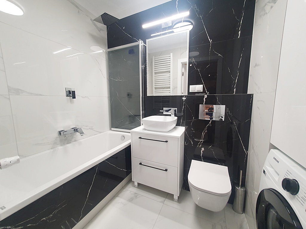| Wyposażenie łazienki | natrysk, pralka, umywalka, wanna, wc |