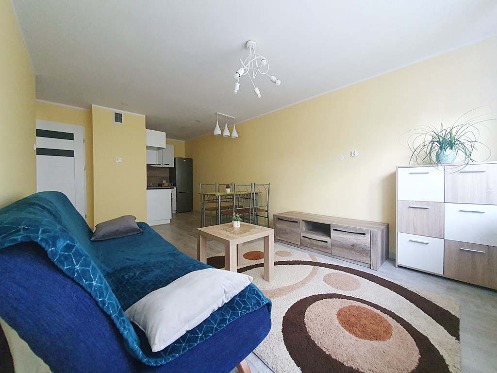 Mieszkanie środkowe jednostronne - rozkładowe, w pełni umeblowane i wyposażone po gruntownym remoncie. Kuchnia zaopatrzona została w lodówkę, kuchenkę, piekarnik. Sypialnia natomiast wyposażona została w przestronne łóżko oraz szafę. W łazience znajduje się pralka, WC oraz prysznic. W pobliżu znaleźć można liczne sklepy, punkty usługowe, restaurację, szkołę podstawową, liceum ogólnokształcące, żłobek, siłownie.