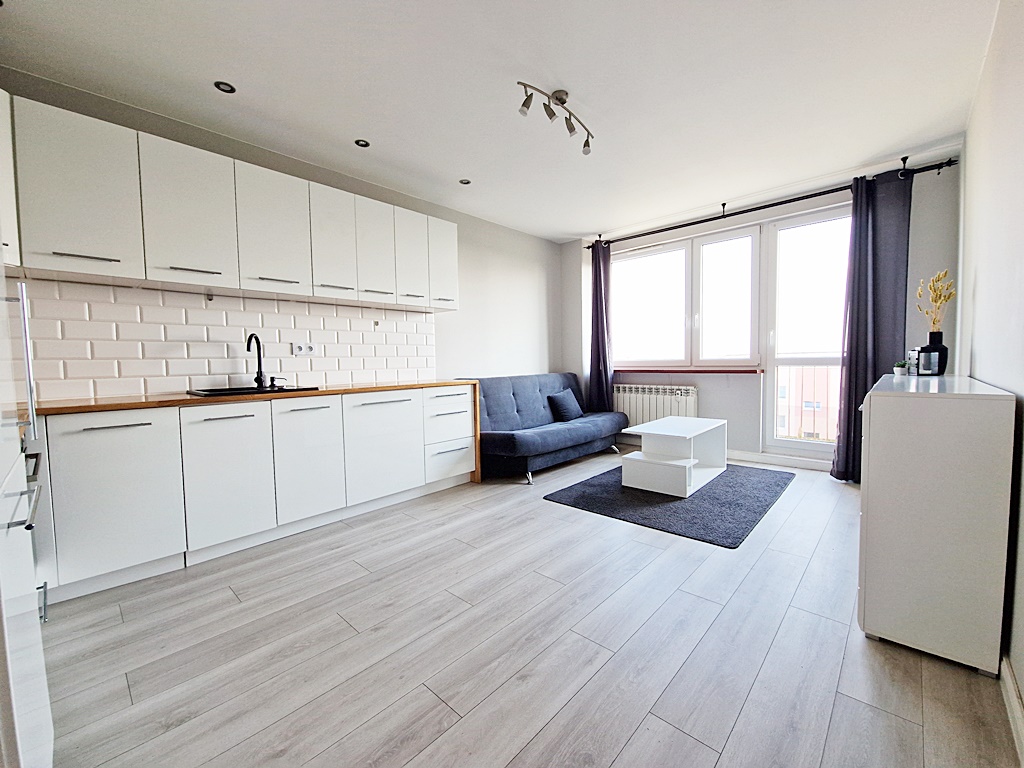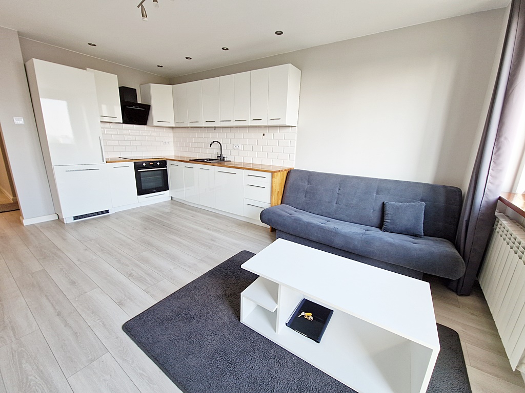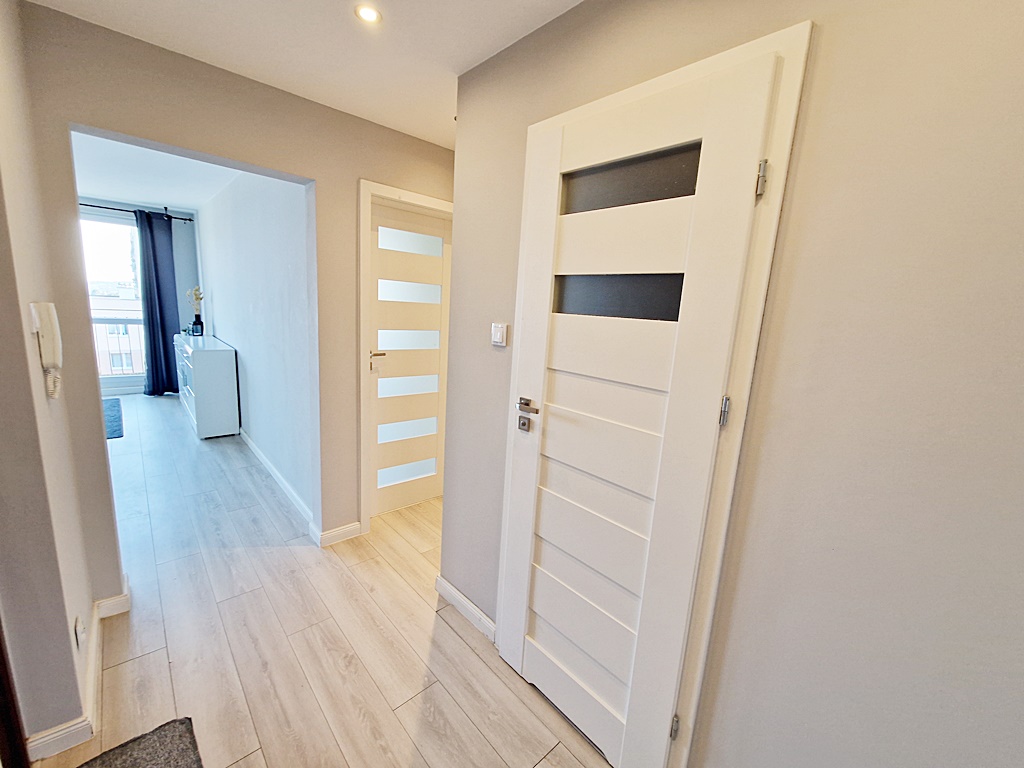 Mieszkanie narożne, dwustronne - rozkładowe usytuowane na IV piętrze. Częściowo umeblowane i wyposażone. Prezentowana nieruchomość została wykończona z myślą o funkcjonalności, komforcie. Salon połączony został z aneksem kuchennym w zabudowie, wyposażonym w sprzęt AGD (lodówka, płyta grzewcza, piekarnik, okap). Jeden z pokoi nie został umeblowany, co daje przyszłemu najemcy sposobność własnej aranżacji. W łazience znaleźć można wannę z funkcją prysznica. Dodatkowym atutem mieszkania jest wydzielona garderoba w której została umiejscowiona pralka. Piwnica do dyspozycji przyszłego najemcy. Wejście do klatki zabezpieczone domofonem.