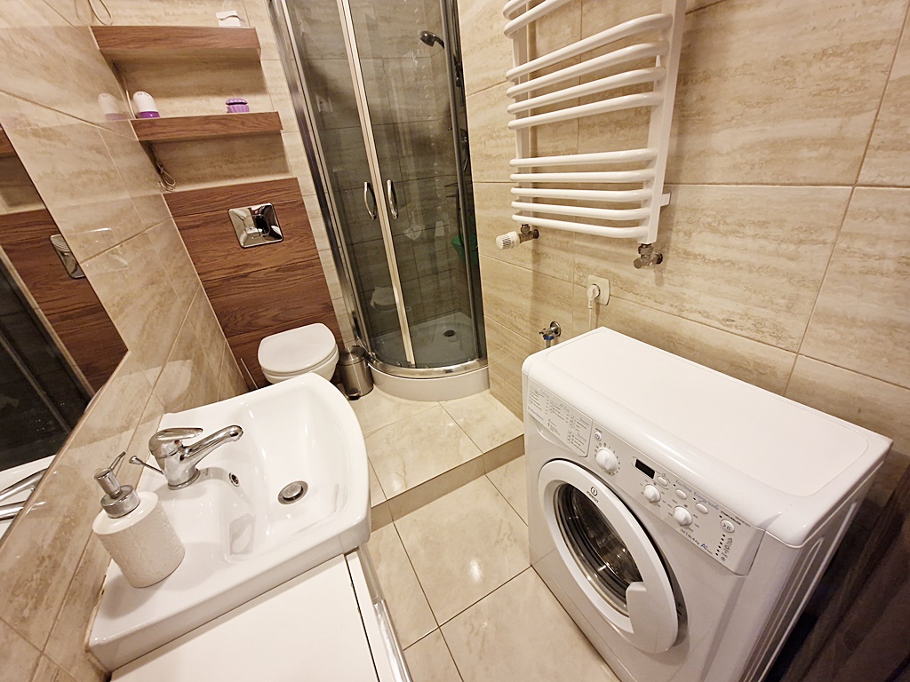 | Wyposażenie łazienki | natrysk, pralka, umywalka, wc |
