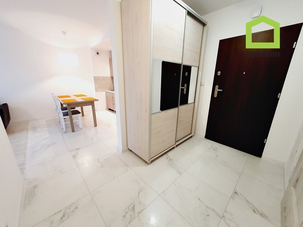 Mieszkanie w pełni umeblowane oraz wyposażone w niezbędny sprzęt AGD: lodówka, piekarnik, płyta indukcyjna, zmywarka, okap, mikrofala. W łazience kabina prysznicowa, umywalka, pralka oraz WC. Lokal gotowy do wprowadzenia.