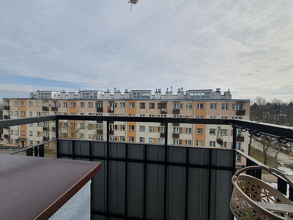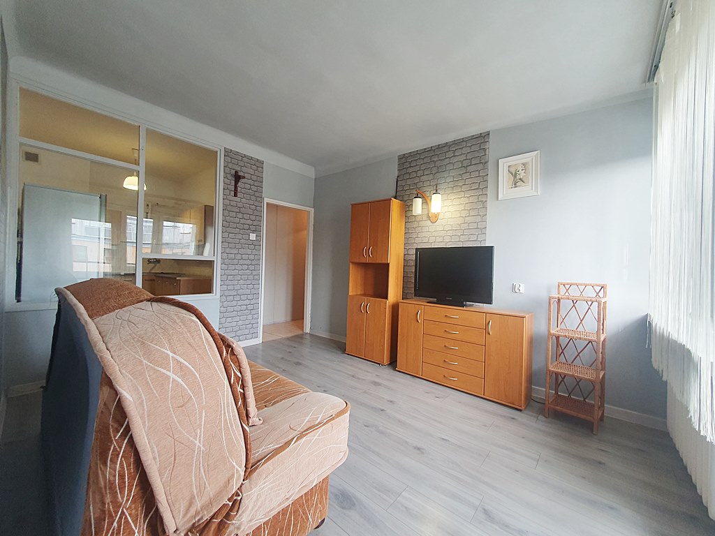 Mieszkanie środkowe, jednostronne - rozkładowe. W skład nieruchomości wchodzi, salon - połączony z balkonem - oddzielna kuchnia, łazienka z WC oraz sypialnia. Do mieszkania przynależy piwnica. Wejście do klatki zabezpieczone domofonem. Wokół budynku znajdują się liczne miejsca postojowe. Istnieje możliwość podłączenia internetu.