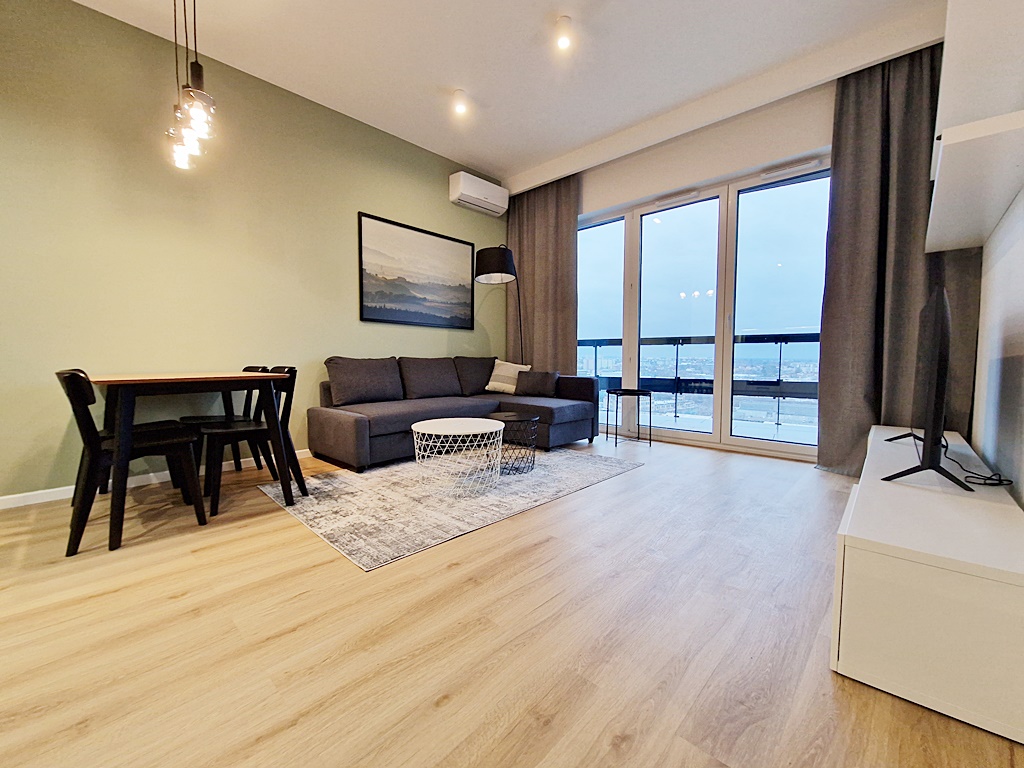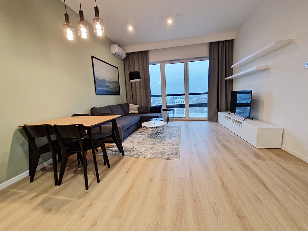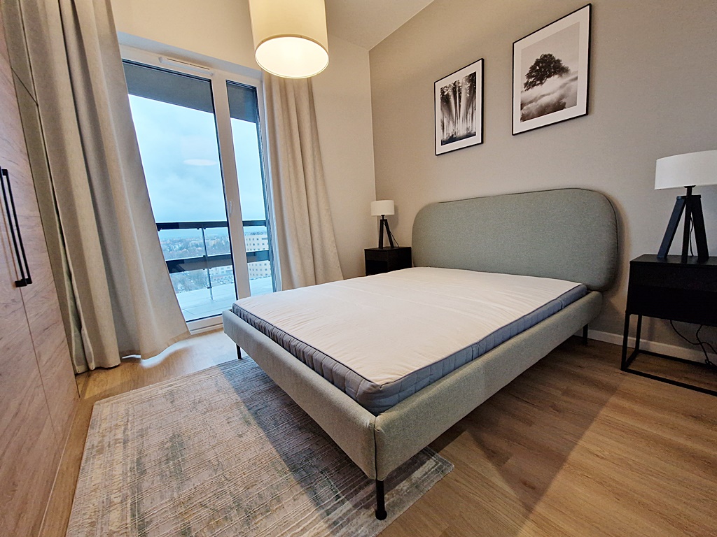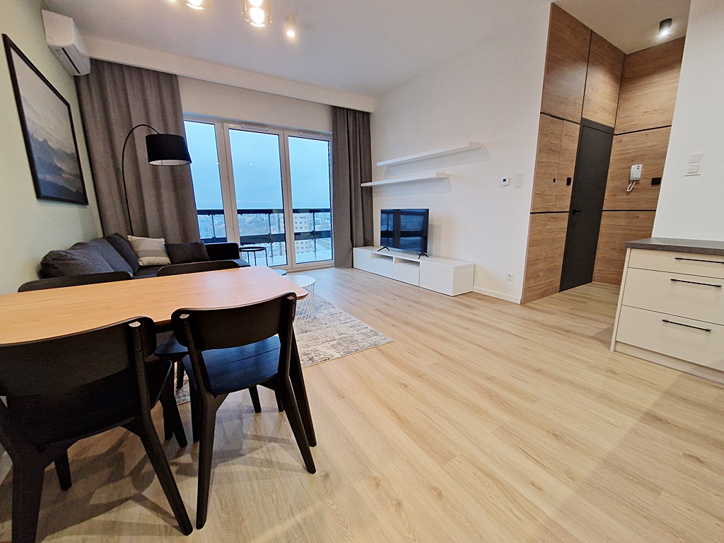 Do wynajęcia nowe dwu pokojowe , komfortowe mieszkanie pod klucz usytuowane na 14 piętrze w 16 piętrowym apartamentowcu PLAZA TOWER oddanym do użytku w 2022 r. W budynku znajdują się 3 cichobieżne windy.