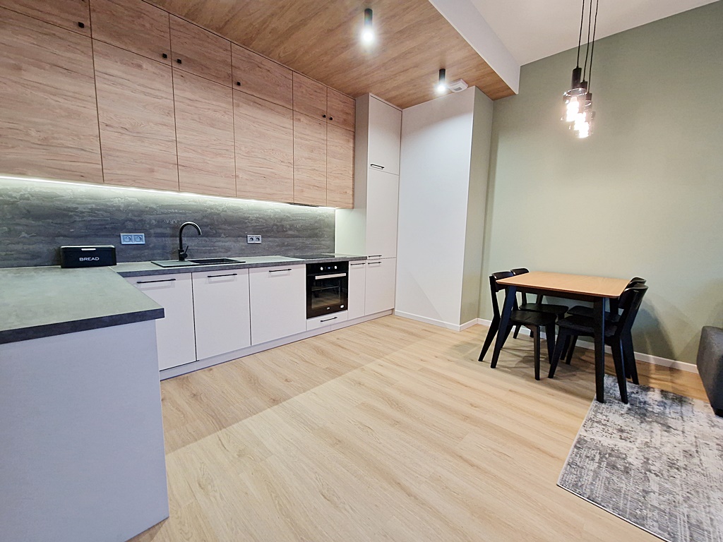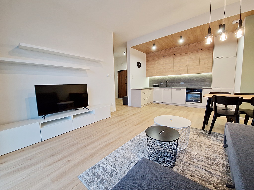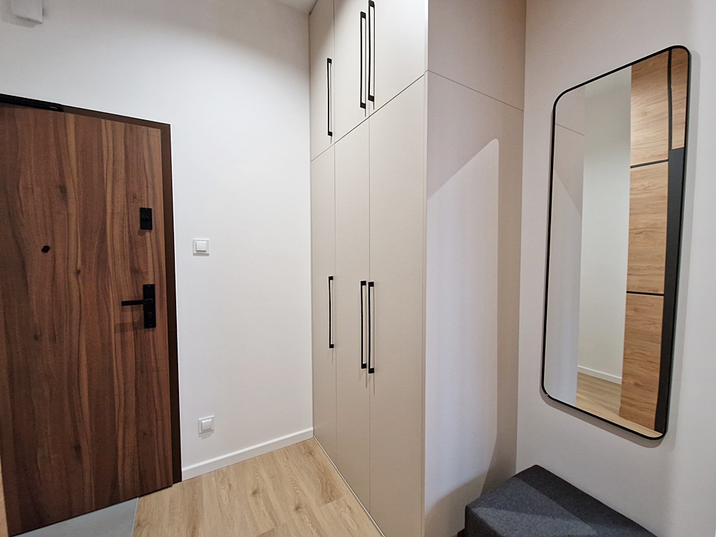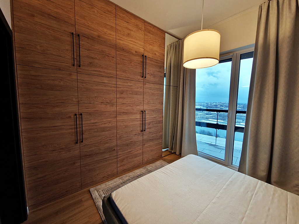 Do wynajęcia nowe dwu pokojowe , komfortowe mieszkanie pod klucz usytuowane na 14 piętrze w 16 piętrowym apartamentowcu PLAZA TOWER oddanym do użytku w 2022 r. W budynku znajdują się 3 cichobieżne windy.