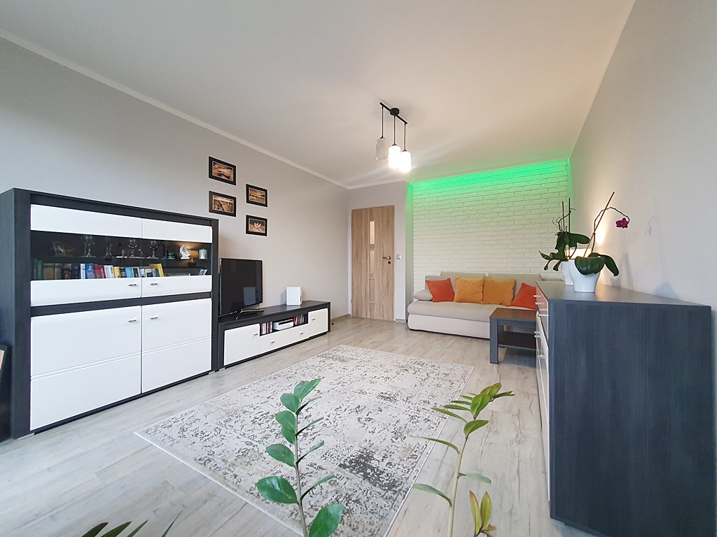 Mieszkanie środkowe dwustronne - rozkładowe, umeblowane i wyposażone. W salonie znajduję się wyjście na balkon, dodatkowo pokój ten wyposażono w komodę, szafkę TV, oraz sofę. Kuchnia oddzielna, z oknem, wyposażona w lodówkę, okap, piekarnik, kuchenkę gazową. W łazience znaleźć można, przestronny prysznic, pralkę, oraz WC. Nieruchomość znajduję się w świetnie skomunikowanej części miasta. Lokalizacja idealna dla rodzin lub par, ze względu na bliskość szkół, czy uczelni, a także dobrą komunikację miejską z centrum.