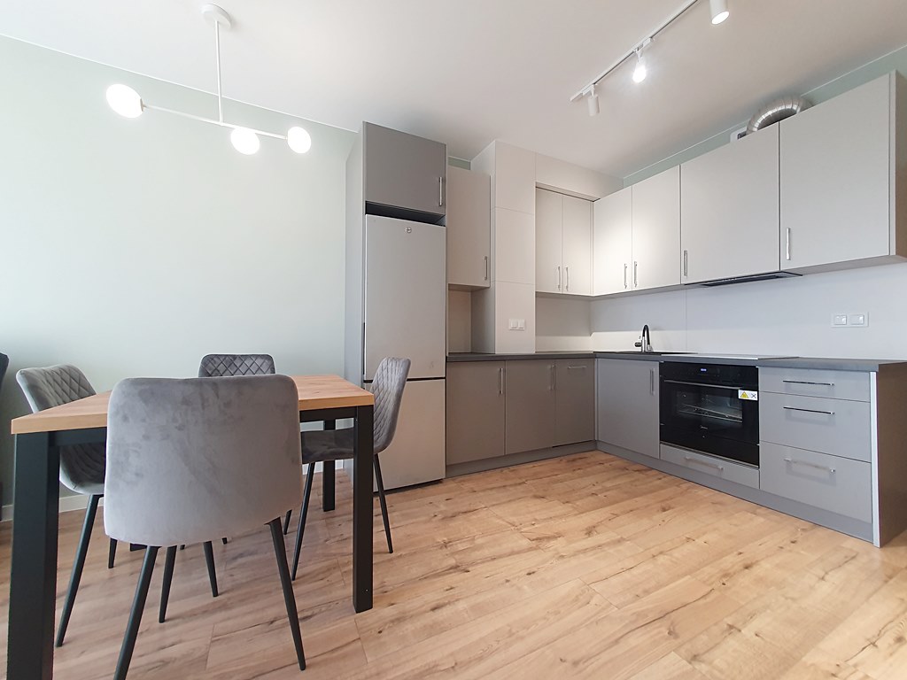 Mieszkanie środkowe jednostronne - rozkładowe, umeblowane i wyposażone. Salon połączony został z aneksem kuchennym, wyposażonym w zabudowaną lodówkę, okap, płytę indukcyjną, piekarnik, zmywarkę. Dwie sypialnie doposażone zostały w łóżko, szafę, komodę oraz biurko. W łazience, znaleźć można duży prysznic, pralkę oraz WC. Atutem mieszkania jest przede wszystkim lokalizacja - z dostępem do głównych węzłów komunikacyjnych, łączących pozostałą część Kielc, a także obszarów poza terenem miasta - oraz świetnie rozwinięta infrastruktura w promieniu 200 m, od inwestycji.