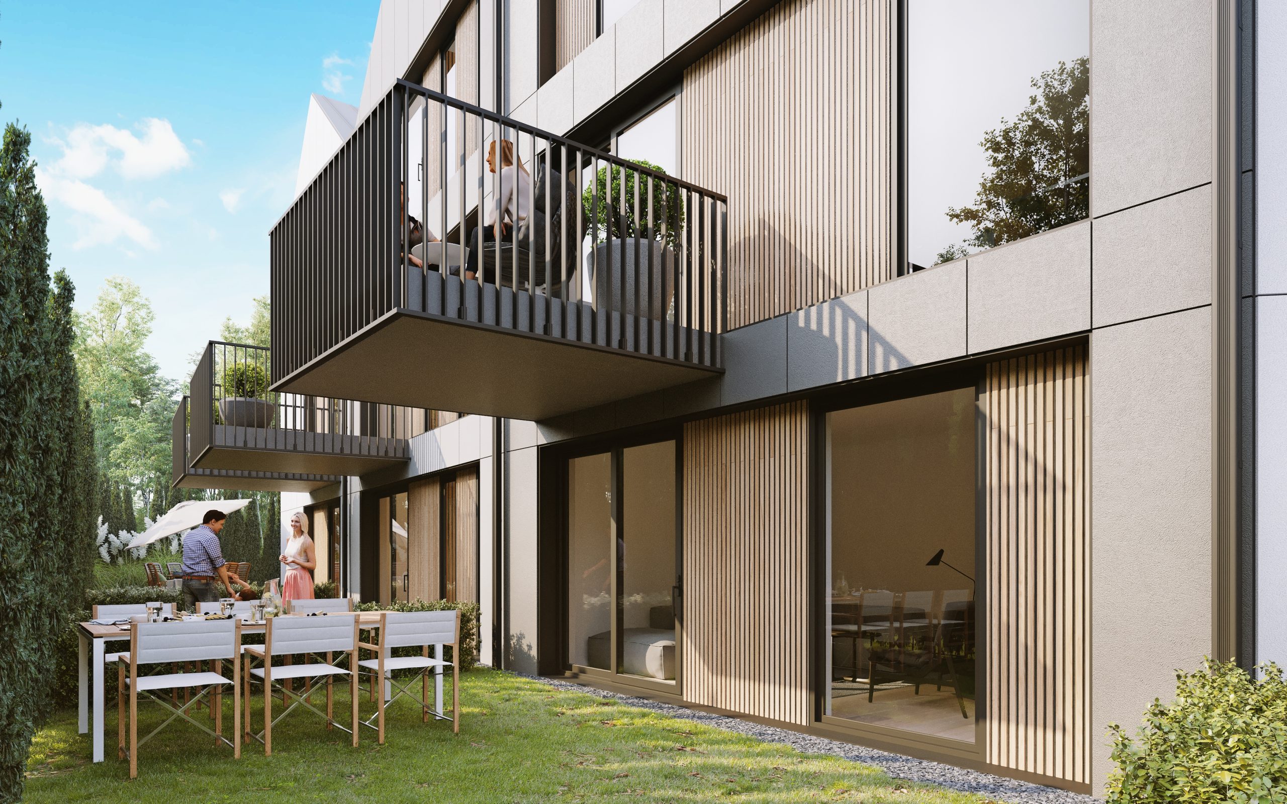 Całość inwestycji będzie składać się z 4 APARTAMENTÓW o powierzchni od 145m2 do 202m2. Do każdego z nich przynależy garaż w bryle budynku oraz ogródek. Budynek o łącznej powierzchni niemal 198m2 wliczając w to: