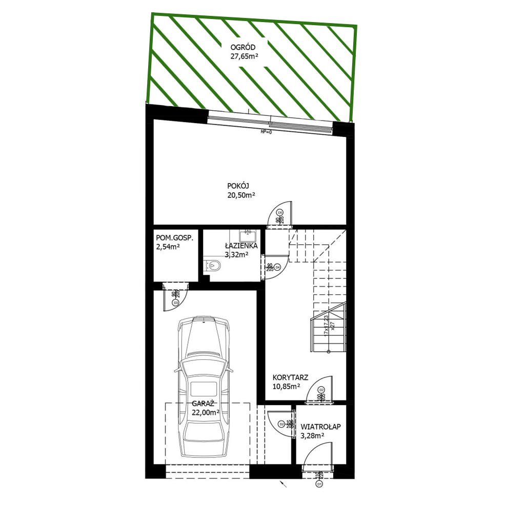 - Garaż i pomieszczenia gospodarcze 25m2