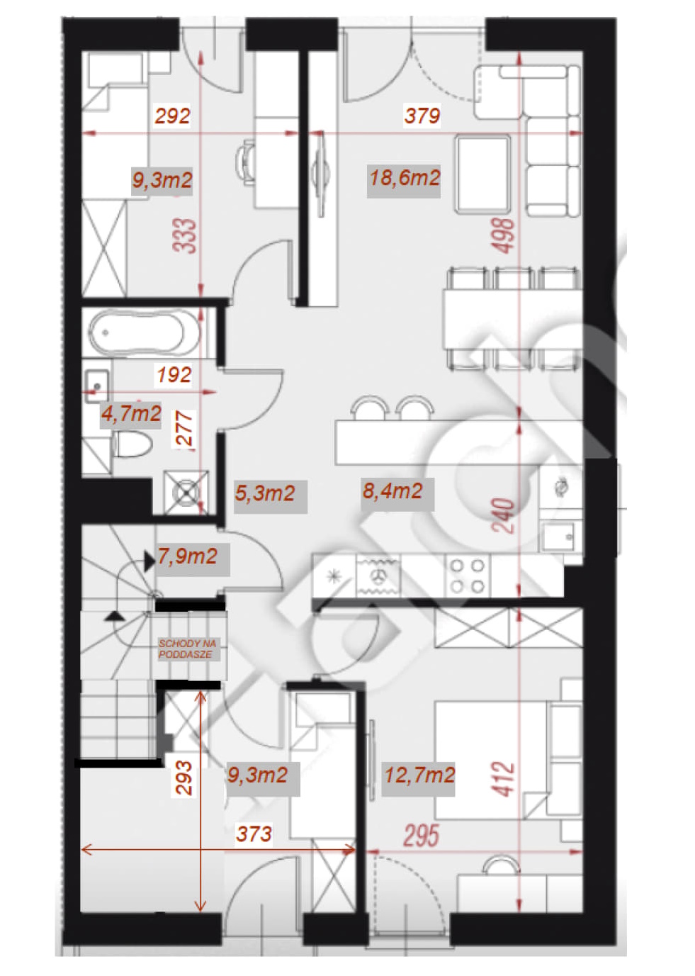 - kondygnacja poddasza do własnej adaptacji (wełna, zabudowy g-k, rozprowadzenie instalacji, wylewka, schody)
