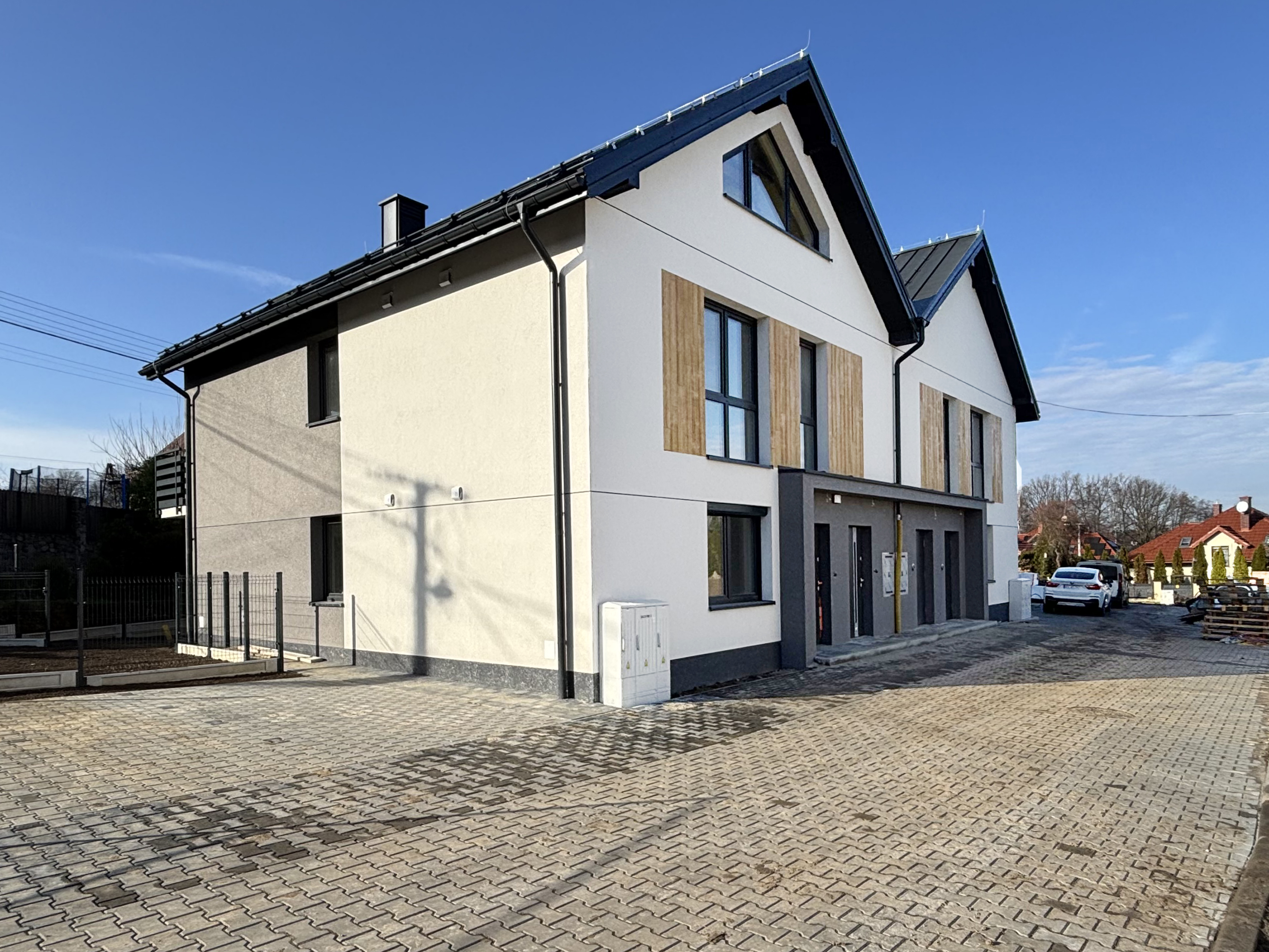 Mieszkanie stanowi część kameralnej inwestycji, która składać się będzie z domów jednorodzinnych w zabudowie bliźniaczej. Całość zabudowy będzie ogrodzona z wjazdem przez automatyczną bramą.